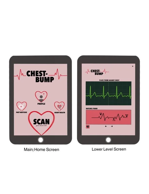 Chest-Bump is a digital heart rate monitor app that captures the heart's electrical activity by simply placing a phone over it. It utilizes a digital electrocardiogram to measure and display an individual's heart rate. The app goes beyond monitoring, as it matches users with similar cardiac electrical activity, enabling them to connect and mingle with like-minded individuals. Whether you're seeking companionship or health-related guidance, Chest-Bump allows you to find and interact with people nearby or even at a distance, all while receiving personalized health tips based on your heart rate.