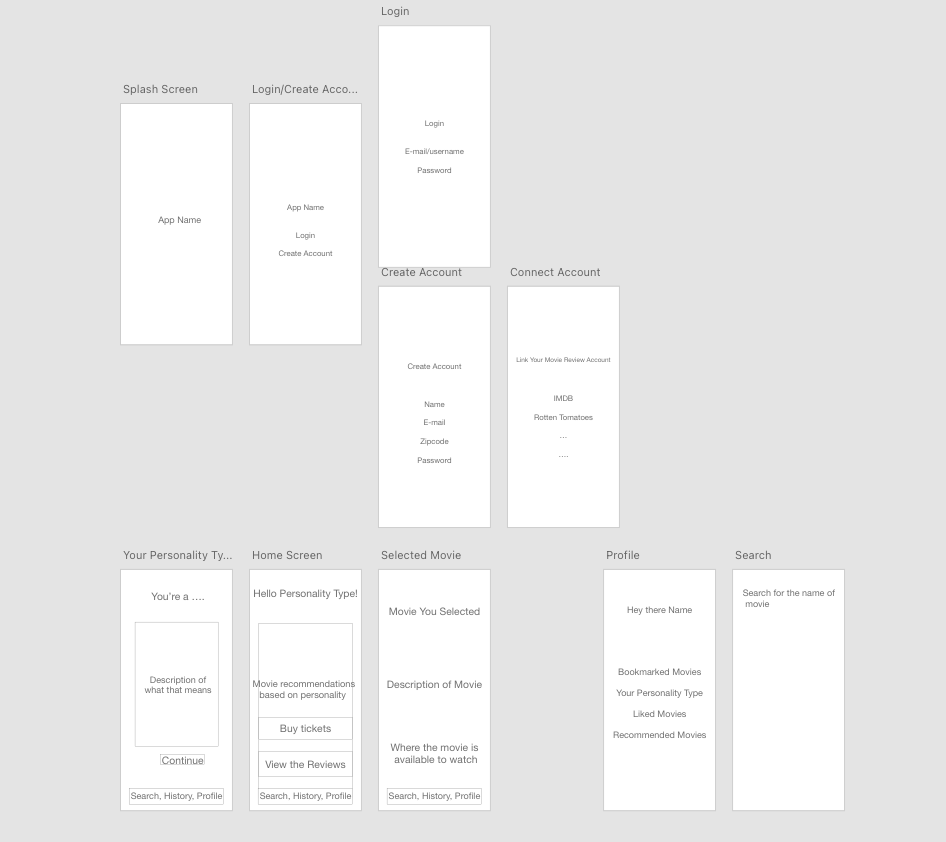 After finalizing the visuals, we integrated components to create a complete prototype with login, homepage, personality, and movie pages. This prototype demonstrated the app's functionality and flow, helping us test and gather feedback for a smooth user experience before development.